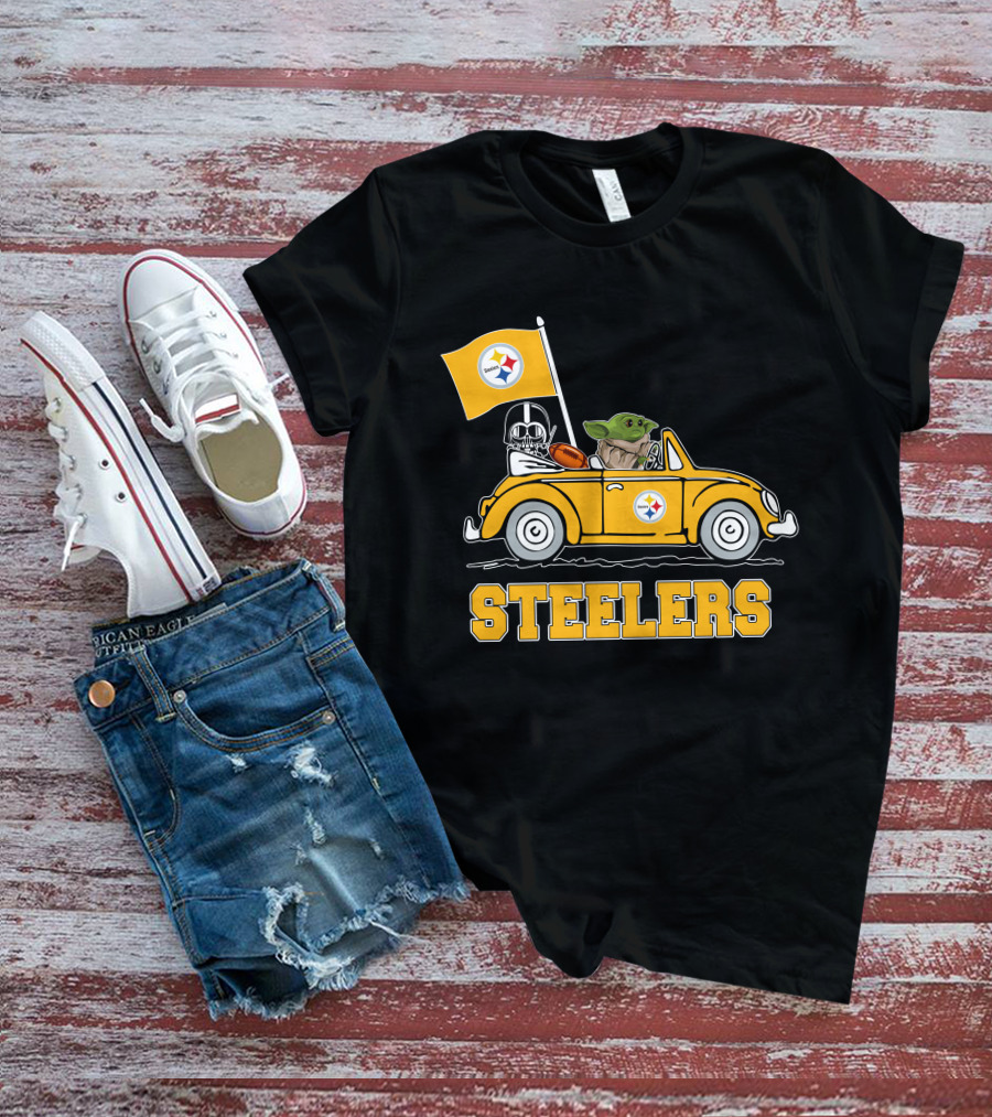 Pittsburgh Steelers Darth Vader Baby Yoda Driving Steelers Car T-Shirt