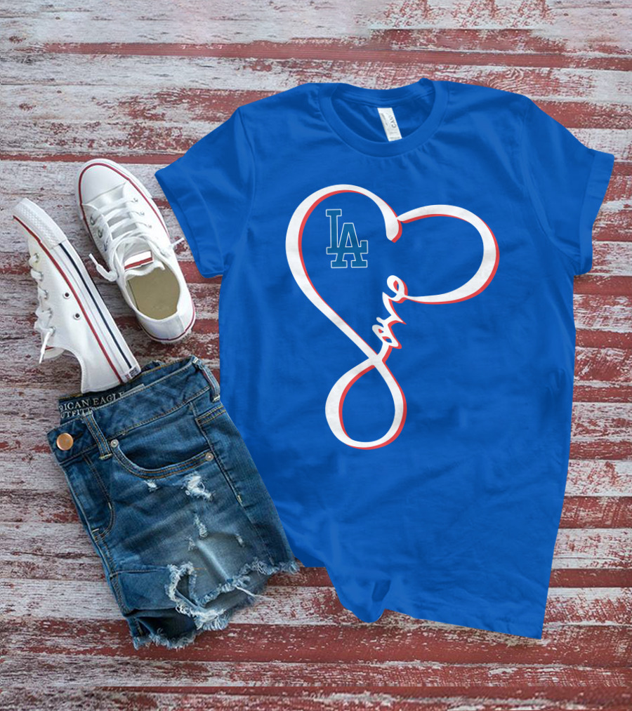 LA Dodgers Love Script With Heart-Shaped T-Shirt