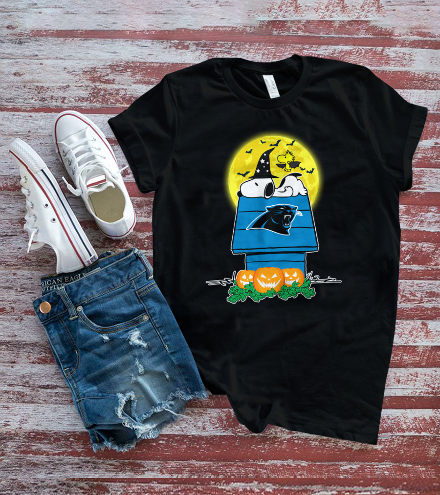 Carolina Panthers Snoopy Woodstock Halloween Pumpkins Moon House T-Shirt