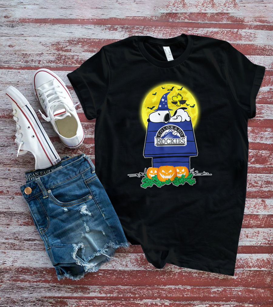 Colorado Rockies Snoopy Halloween Pumpkin Moon Woodstock T-Shirt