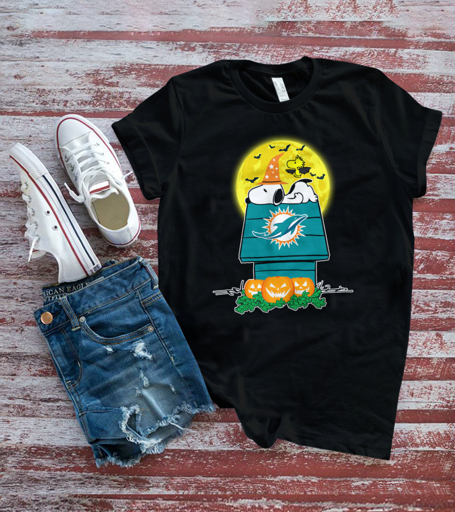 Miami Dolphins Snoopy Halloween Pumpkins Full Moon T-Shirt