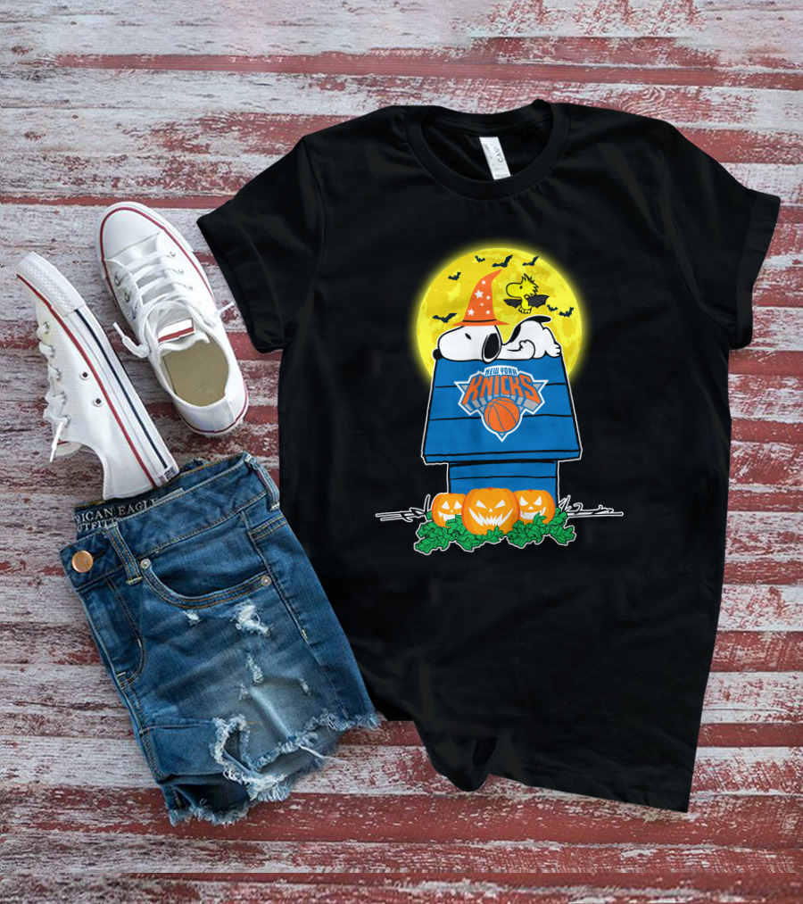 New York Knicks Snoopy Halloween Pumpkin Doghouse Full Moon T-Shirt