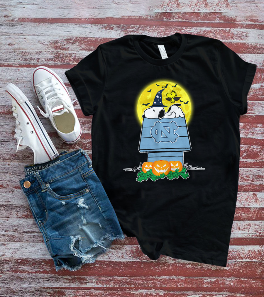 Snoopy North Carolina Tar Heels Halloween Pumpkins Moon T-Shirt