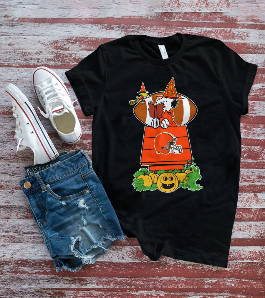 Cleveland Browns Halloween Snoopy Pumpkin Football Scene T-Shirt