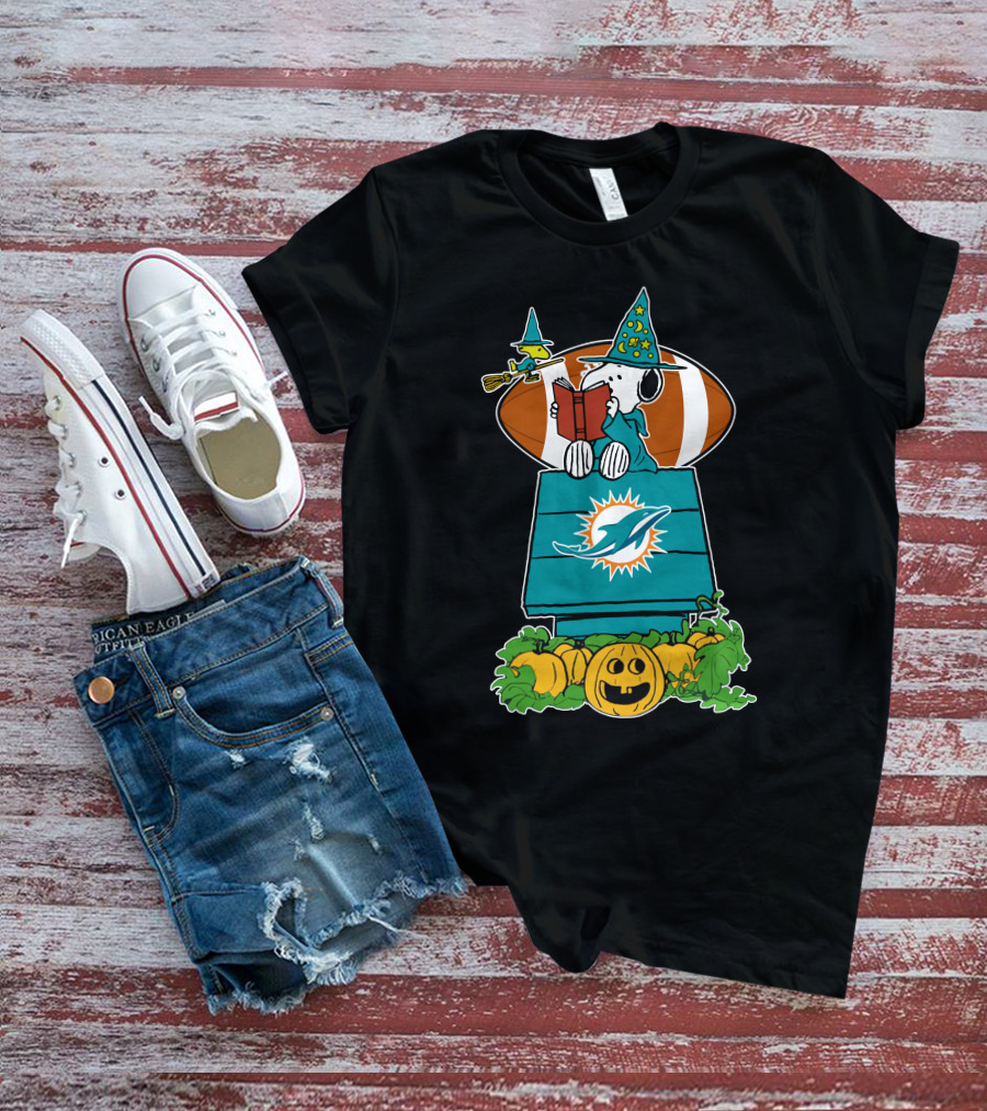Miami Dolphins Snoopy Halloween Witch Pumpkin Football T-Shirt