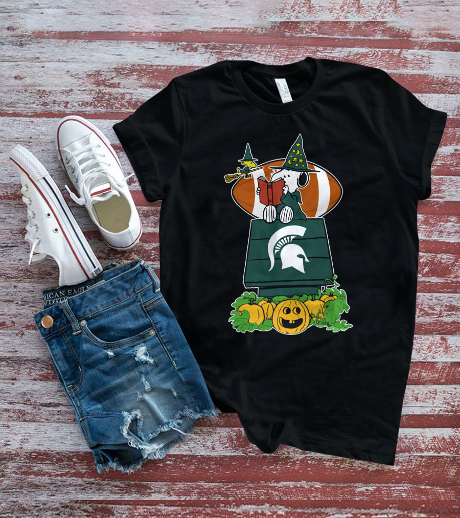 Michigan State Spartans Snoopy Halloween Football Pumpkin House T-Shirt
