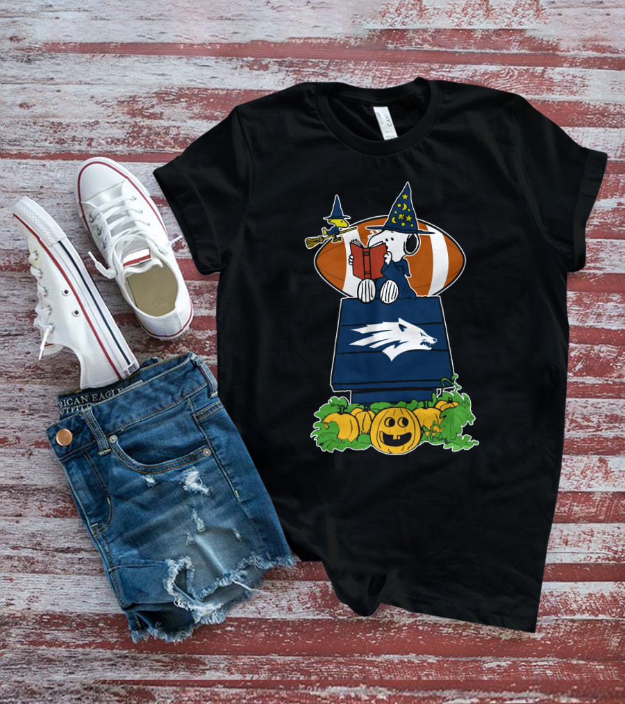 Nevada Wolf Pack Snoopy Halloween Football Wizard House And Pumpkins T-Shirt
