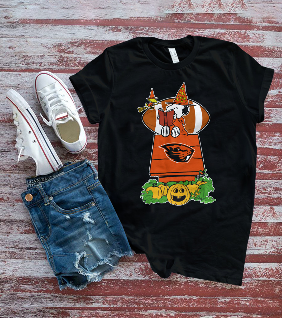 Oregon State Beavers Snoopy Halloween Peanuts Woodstock Football Pumpkin T-Shirt