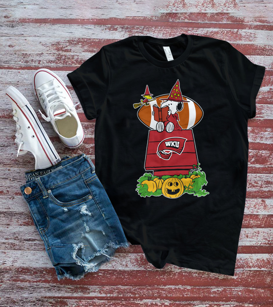 Western Kentucky Hilltoppers Snoopy Halloween Football Woodstock Pumpkin House T-Shirt