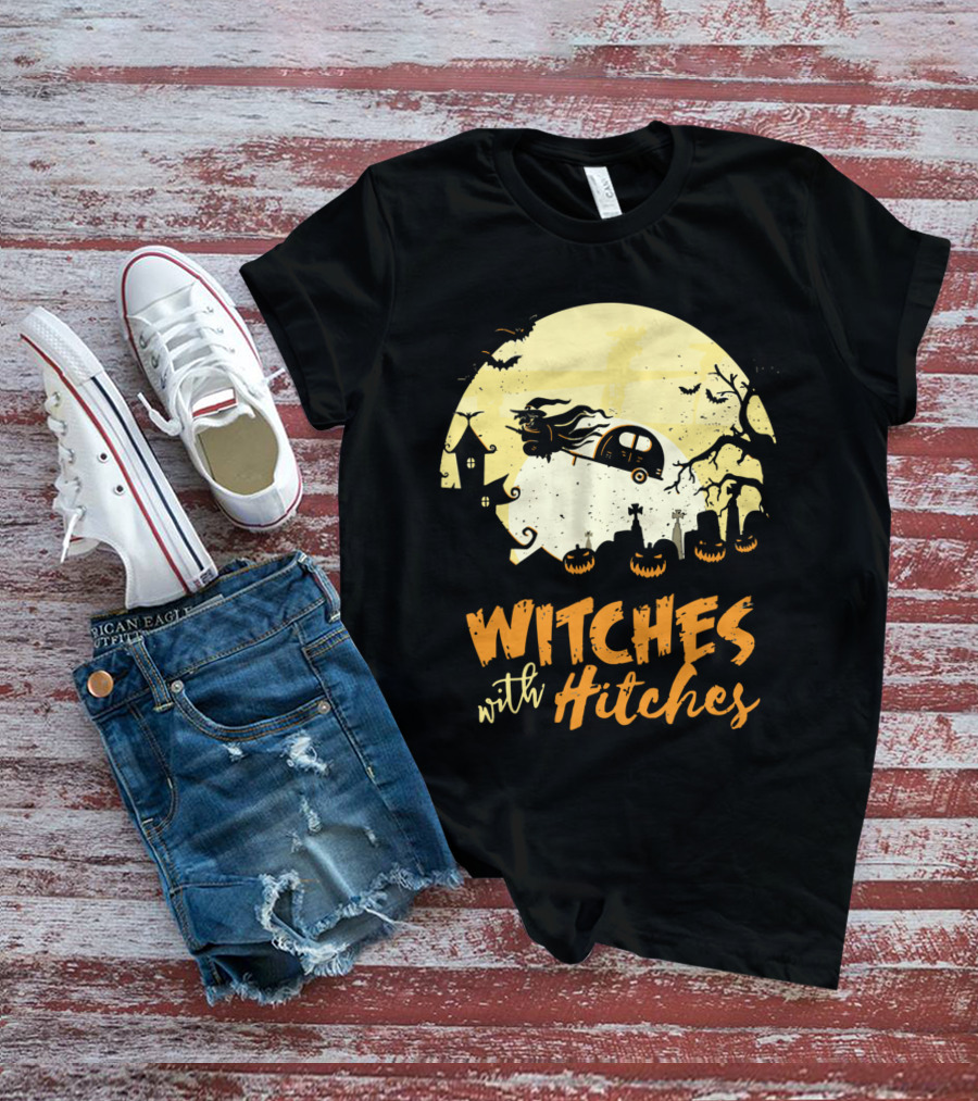 Witches With Hitches Moonlit Halloween Scene T-Shirt