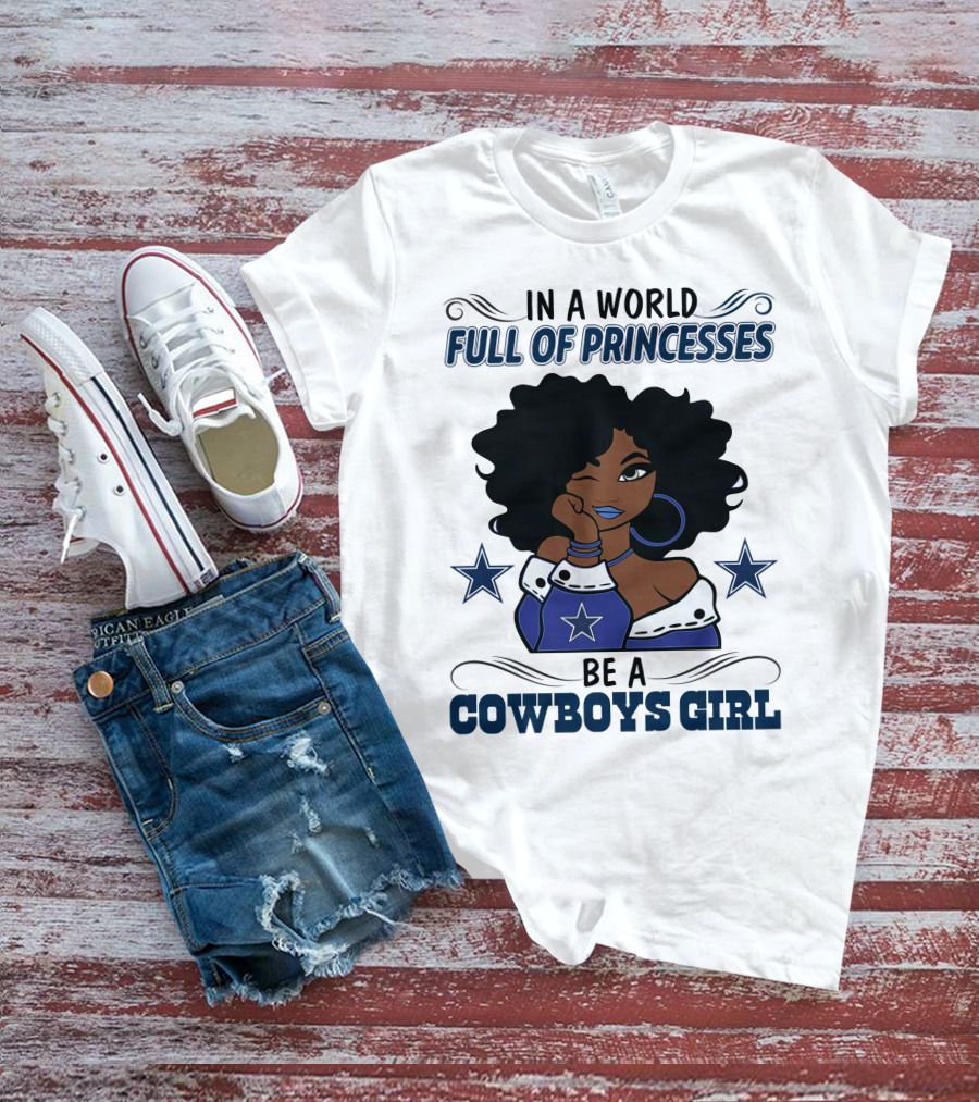 The In A World Full Of Princesses Be A Cowboys Girl Shirt offers a regular fit. Made from 100% ring-spun cotton that is pre-shrunk to help maintain size and shape after washing. Features reinforced construction details for durability. Available in U.S. standard sizes S-5XL to accommodate various body types.