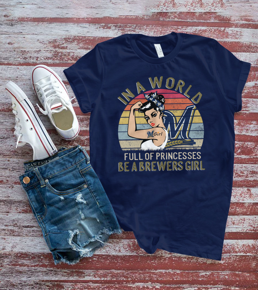 The In A World Full Of Princesses Be A Brewers Girl Shirt offers a regular fit. Made from 100% ring-spun cotton that is pre-shrunk to help maintain size and shape after washing. Features reinforced construction details for durability. Available in U.S. standard sizes S-5XL to accommodate various body types.