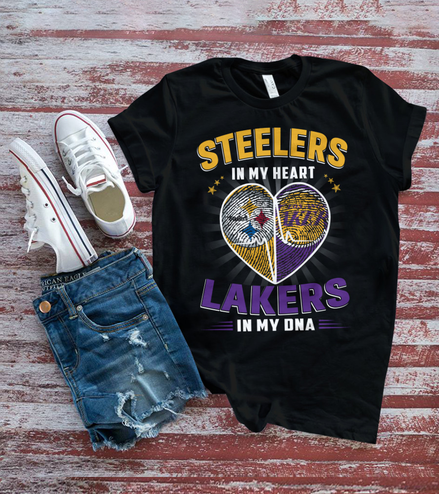 Steelers In My Heart Lakers In My Dna Fingerprint Heart T-Shirt