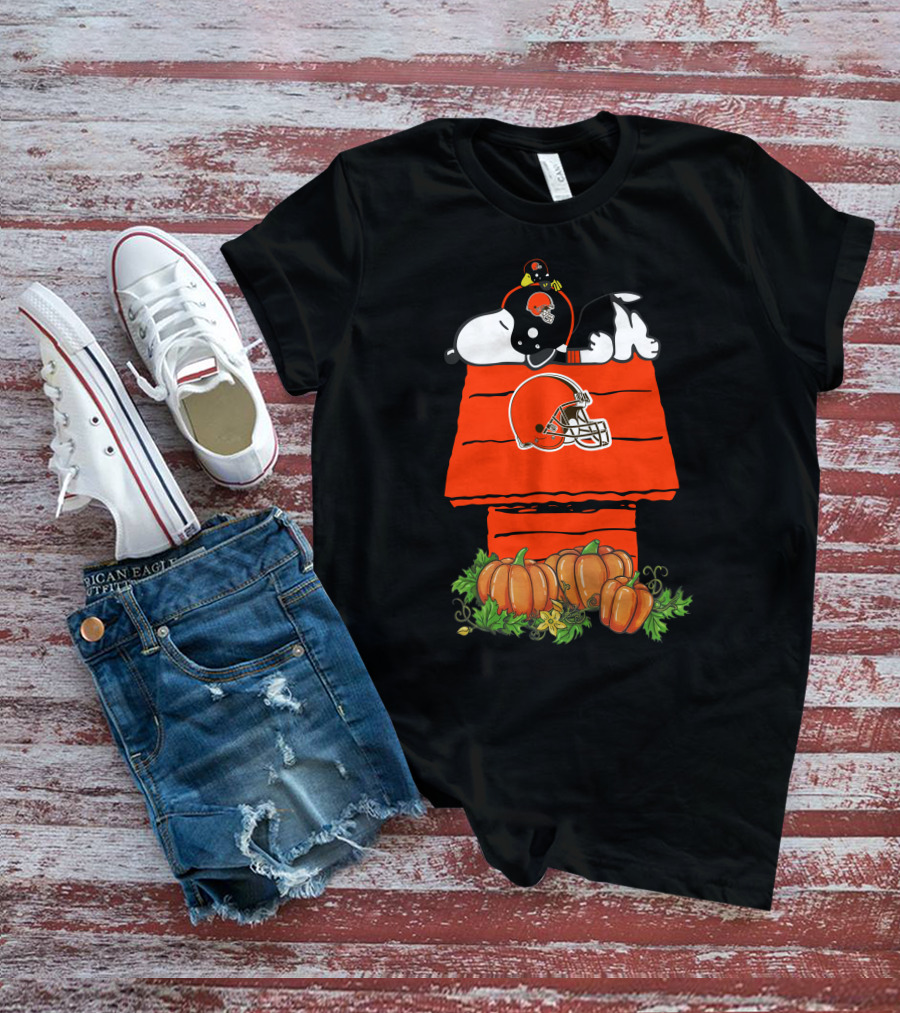 Cleveland Browns Snoopy Pumpkin Halloween Football Doghouse T-Shirt