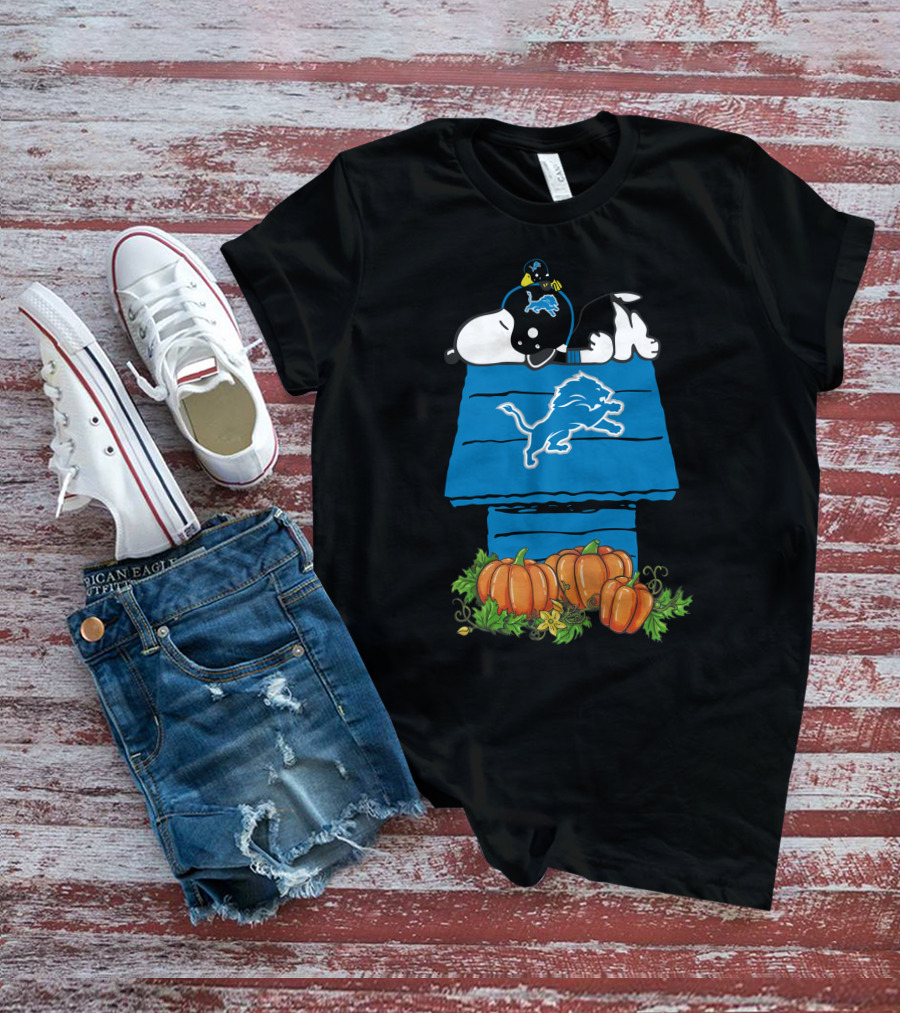 Detroit Lions Snoopy Pumpkin Halloween Peanuts Football Charlie Brown Doghouse T-Shirt