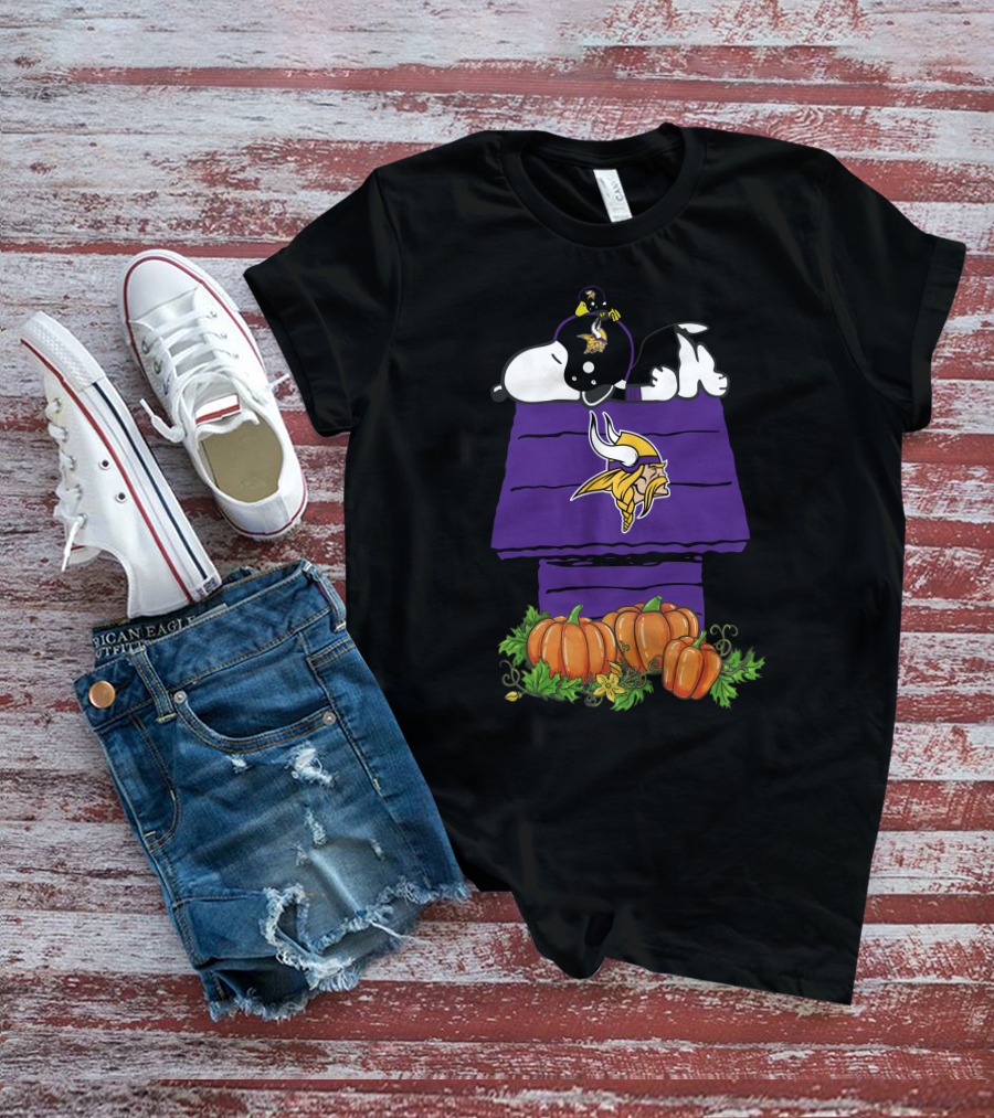 Minnesota Vikings Snoopy Doghouse Pumpkins T-Shirt
