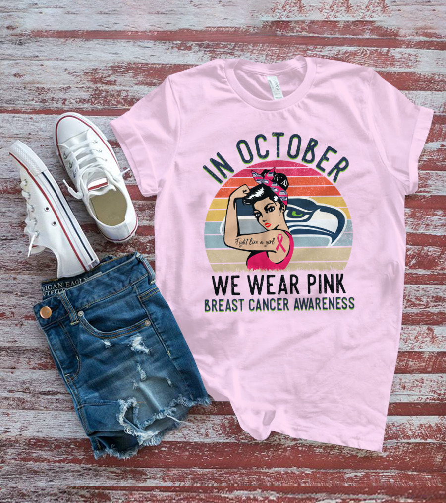 In October We Wear Pink Breast Cancer Awareness Fight Like A Girl T-Shirt