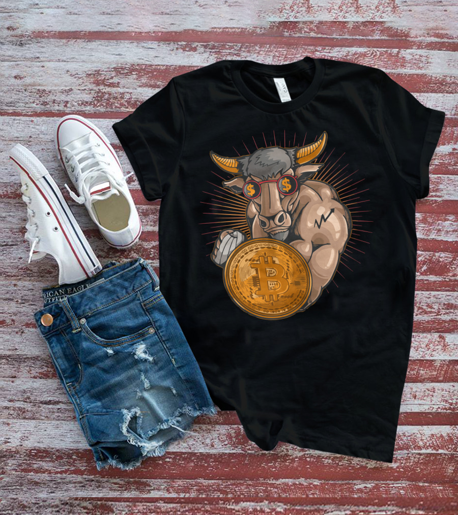Bull With Bitcoin Shield And Dollar Sign Glasses T-Shirt