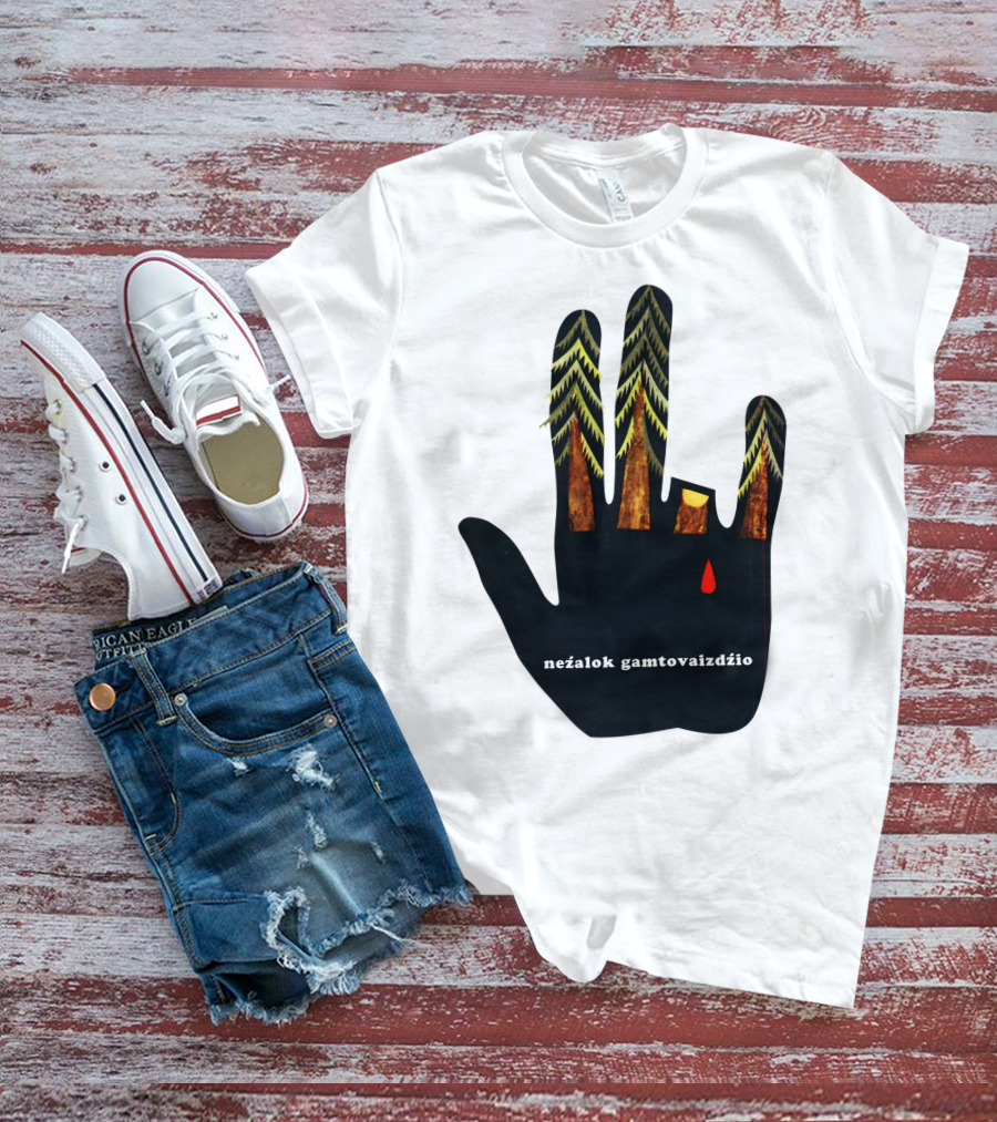 Nežalok Gamtovaizdžio Soviet Lithuanian Environmental Message Hand T-Shirt