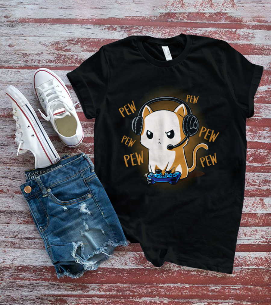 Pew Pew Kitty Cat Gamer Kliban Cats Headset Controller T-Shirt