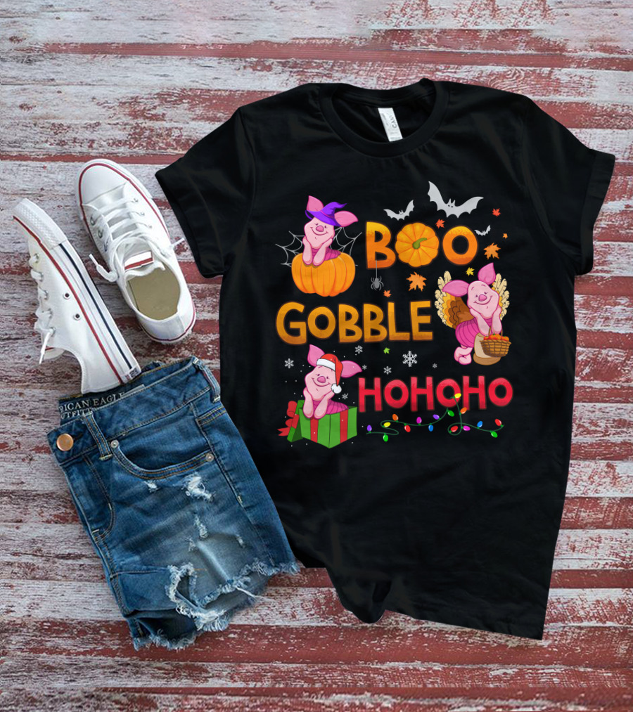 Piglet Boo Gobble Ho Ho Ho Holiday Seasons T-Shirt