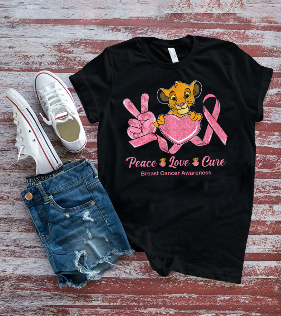 Peace Love Cure Simba Breast Cancer Awareness T-Shirt
