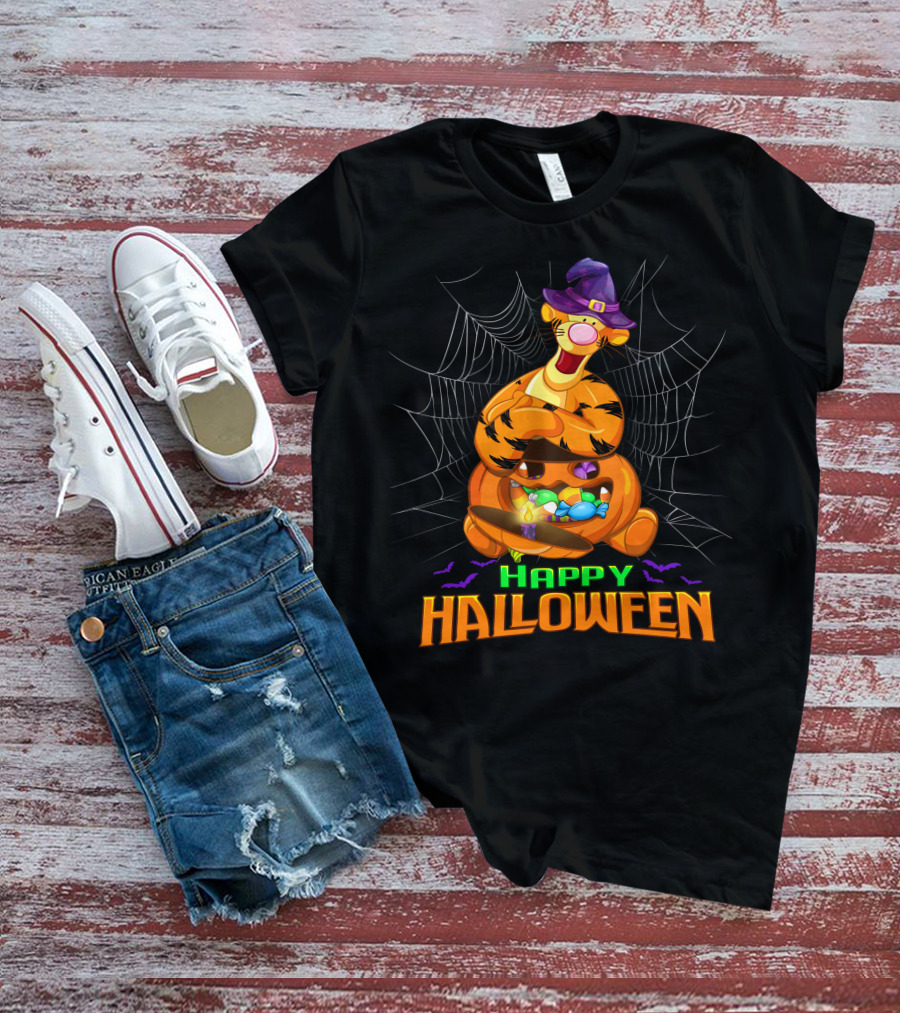 Happy Halloween Tigger Witch Pumpkin Candy Spiders T-Shirt