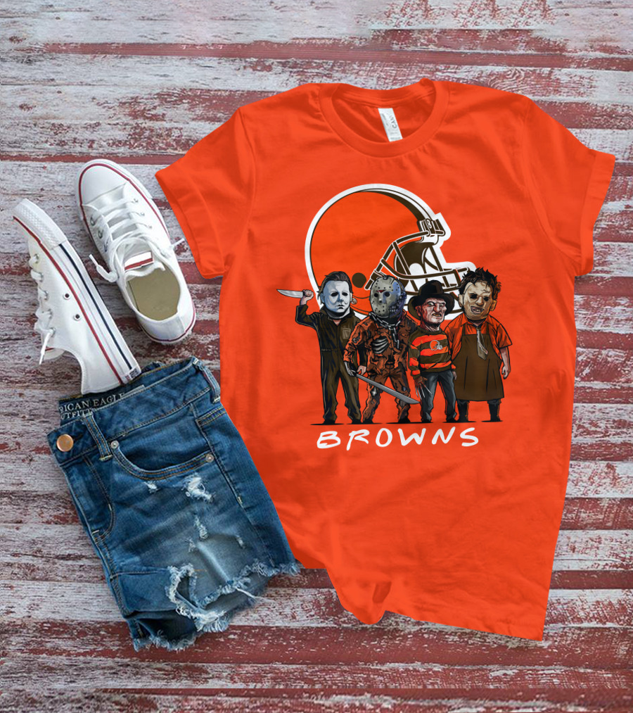 The Cleveland Browns Halloween The Slasher Squad Browns Shirt offers a regular fit. Made from 100% ring-spun cotton that is pre-shrunk to help maintain size and shape after washing. Features reinforced construction details for durability. Available in U.S. standard sizes S-5XL to accommodate various body types.