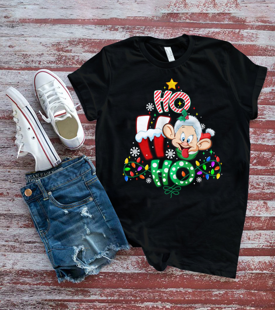 The Dopey Ho Ho Ho Christmas Lights Snowflakes Holiday Cheer Shirt offers a regular fit. Made from 100% ring-spun cotton that is pre-shrunk to help maintain size and shape after washing. Features reinforced construction details for durability. Available in U.S. standard sizes S-5XL to accommodate various body types.