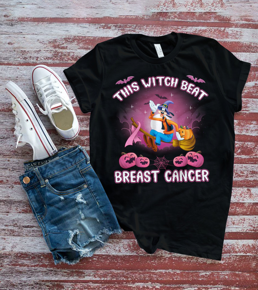 This Witch Beat Breast Cancer Goofy D Halloween Pumpkins Broom Ribbon T-Shirt