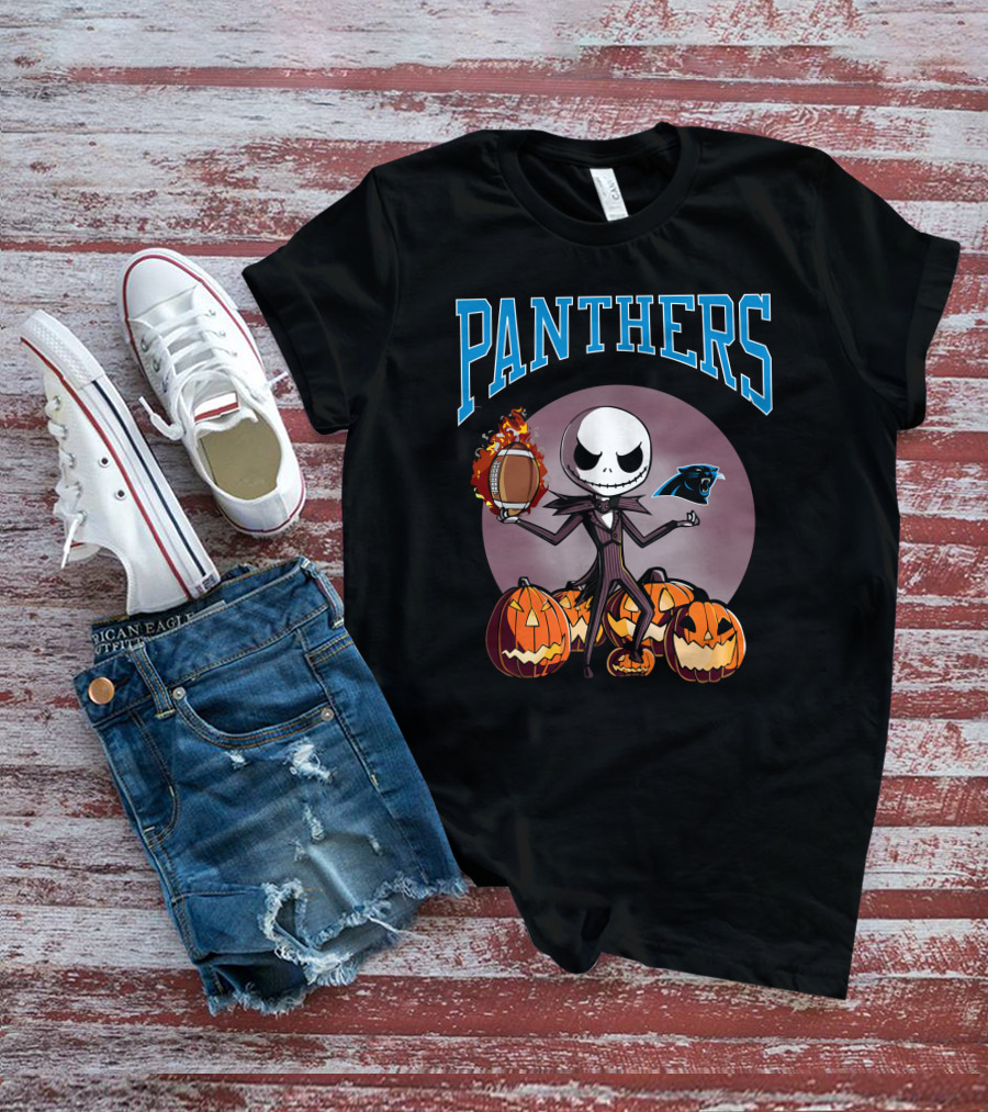 Panthers Jack Skellington Halloween Pumpkins Football T-Shirt