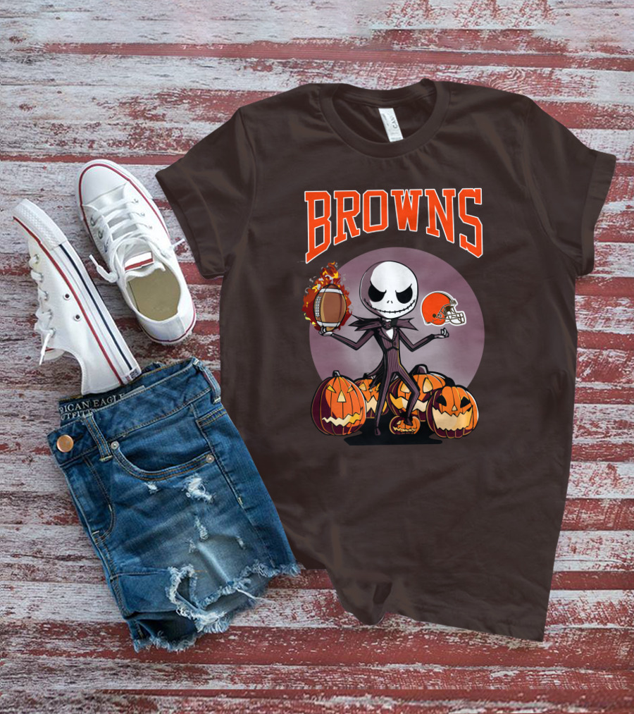 Browns Jack Skellington Cleveland Halloween Football Pumpkins T-Shirt