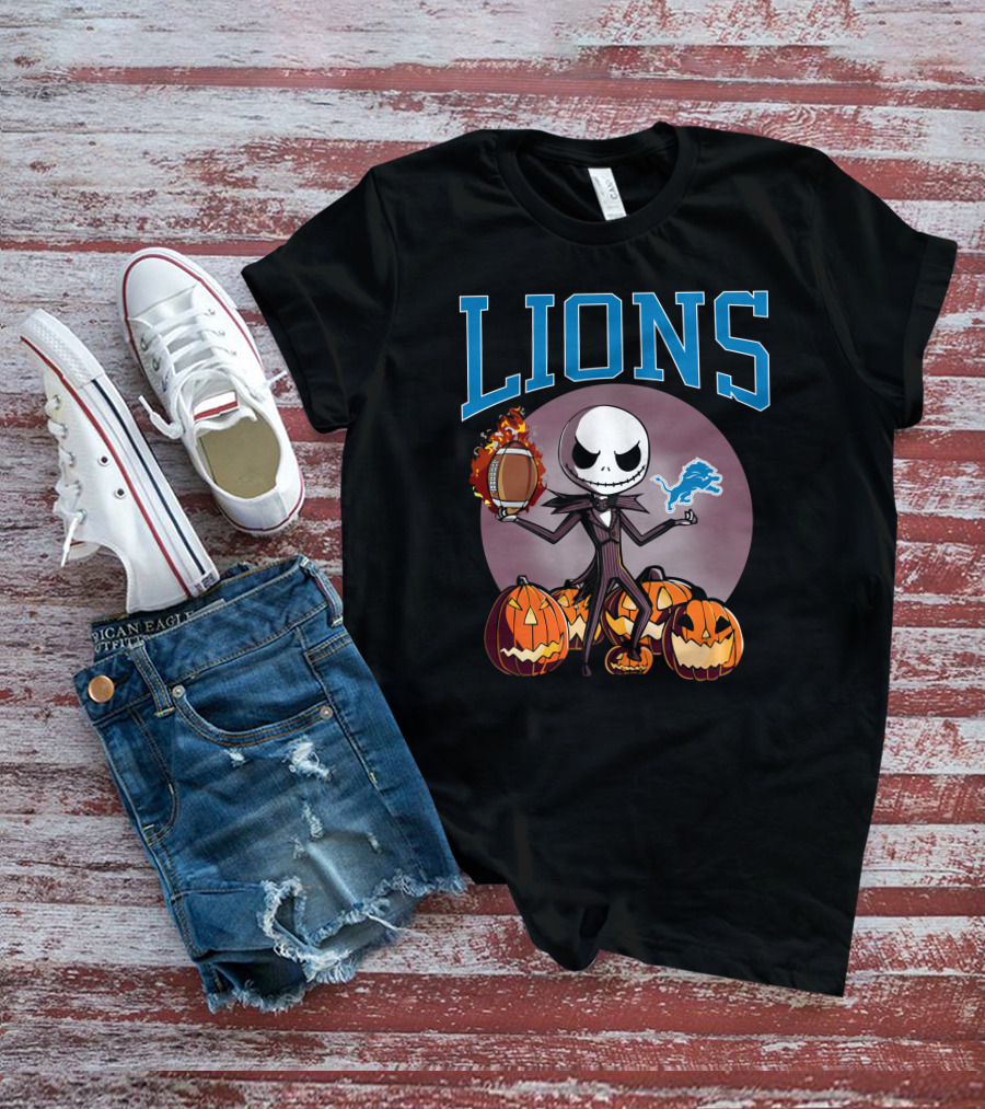 Lions Jack Skellington Detroit Halloween Football Pumpkins T-Shirt