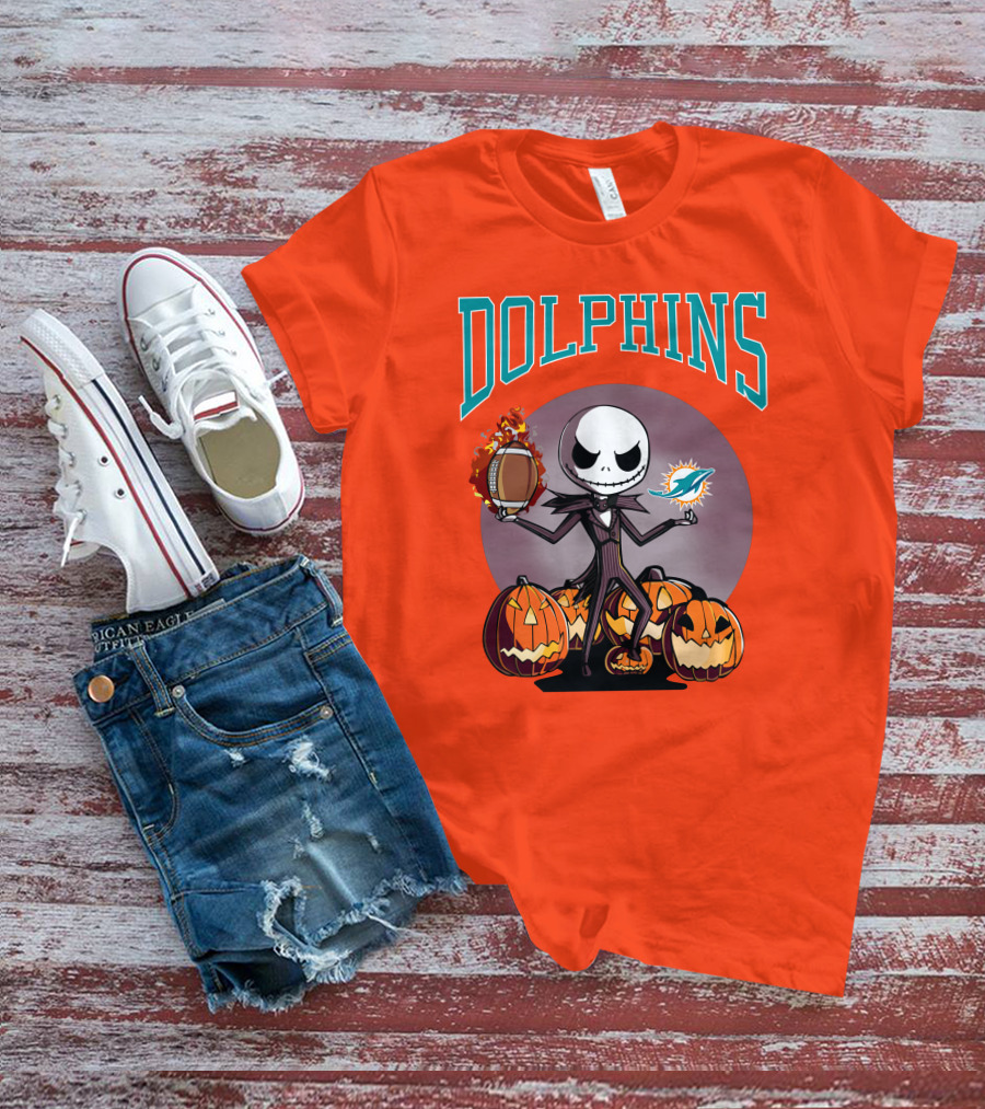 Dolphins Jack Skellington Halloween Miami Football Pumpkins T-Shirt