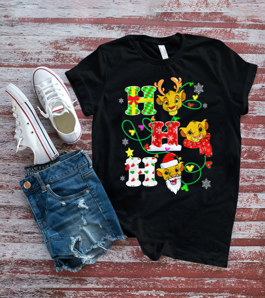 Ho Ho Ho Christmas Simba With Reindeer And Santa Hat T-Shirt