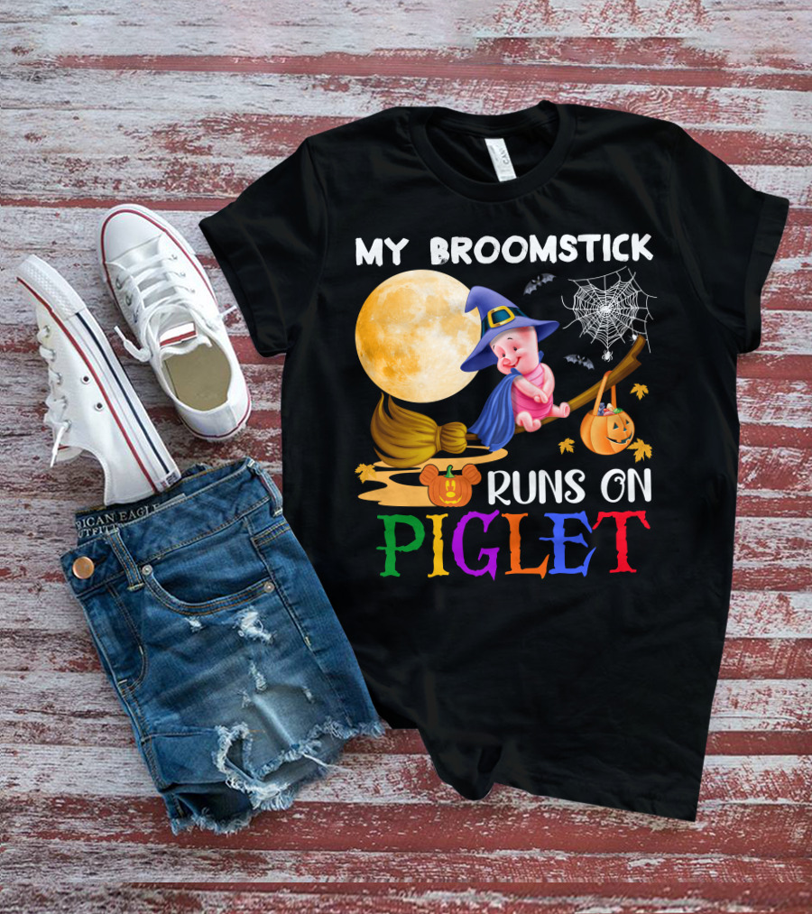 My Broomstick Runs On Piglet Halloween Wizard Moon Pumpkin T-Shirt