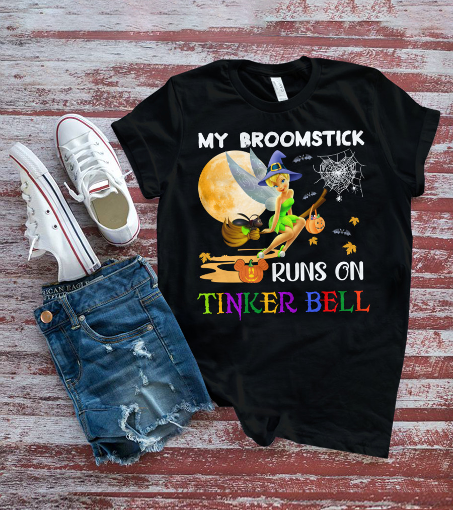 The My Broomstick Runs On Tinker Bell Shirt offers a regular fit. Made from 100% ring-spun cotton that is pre-shrunk to help maintain size and shape after washing. Features reinforced construction details for durability. Available in U.S. standard sizes S-5XL to accommodate various body types.