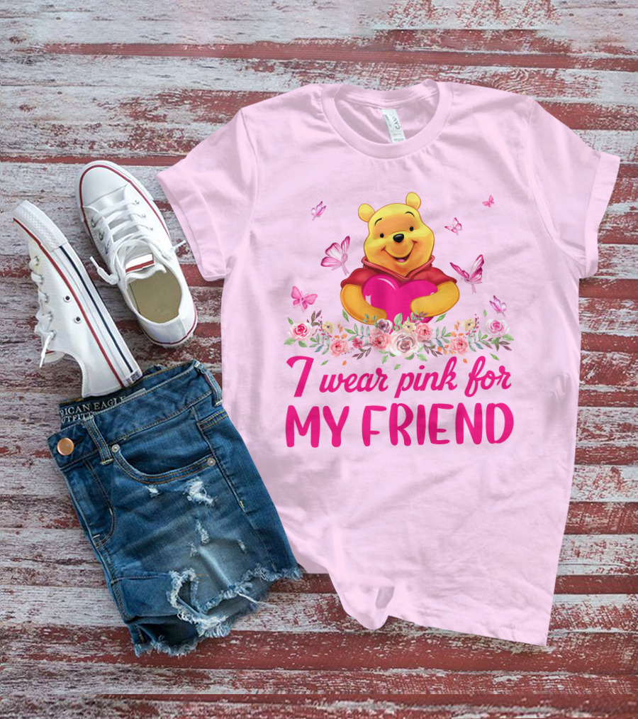 The I Wear Pink For My Friend Pooh Shirt offers a regular fit. Made from 100% ring-spun cotton that is pre-shrunk to help maintain size and shape after washing. Features reinforced construction details for durability. Available in U.S. standard sizes S-5XL to accommodate various body types.