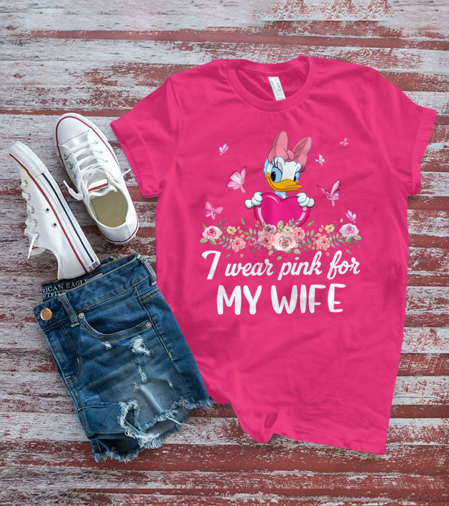 I Wear Pink For My Wife Daisy Roses Butterflies T-Shirt