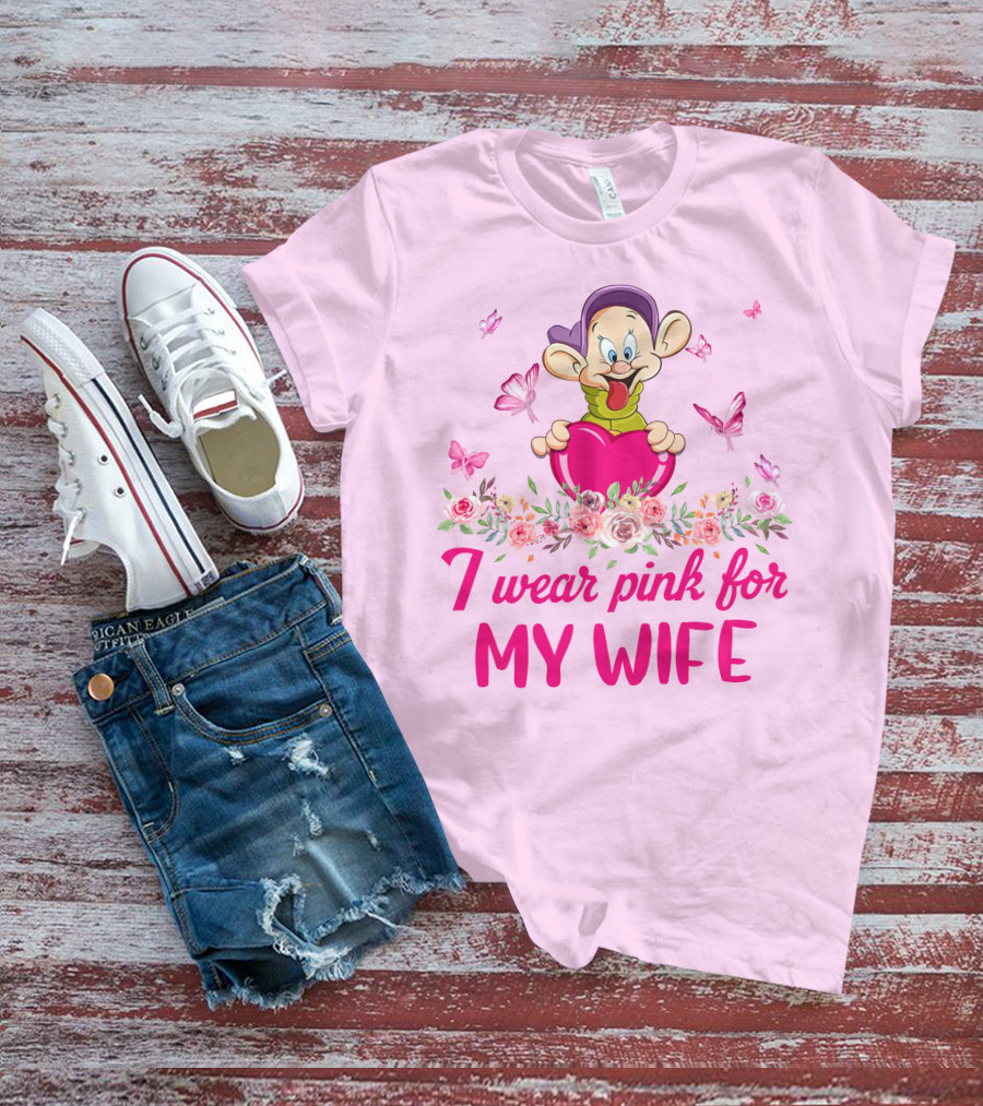 Dopey I Wear Pink For My Wife Butterfly Floral Heart T-Shirt