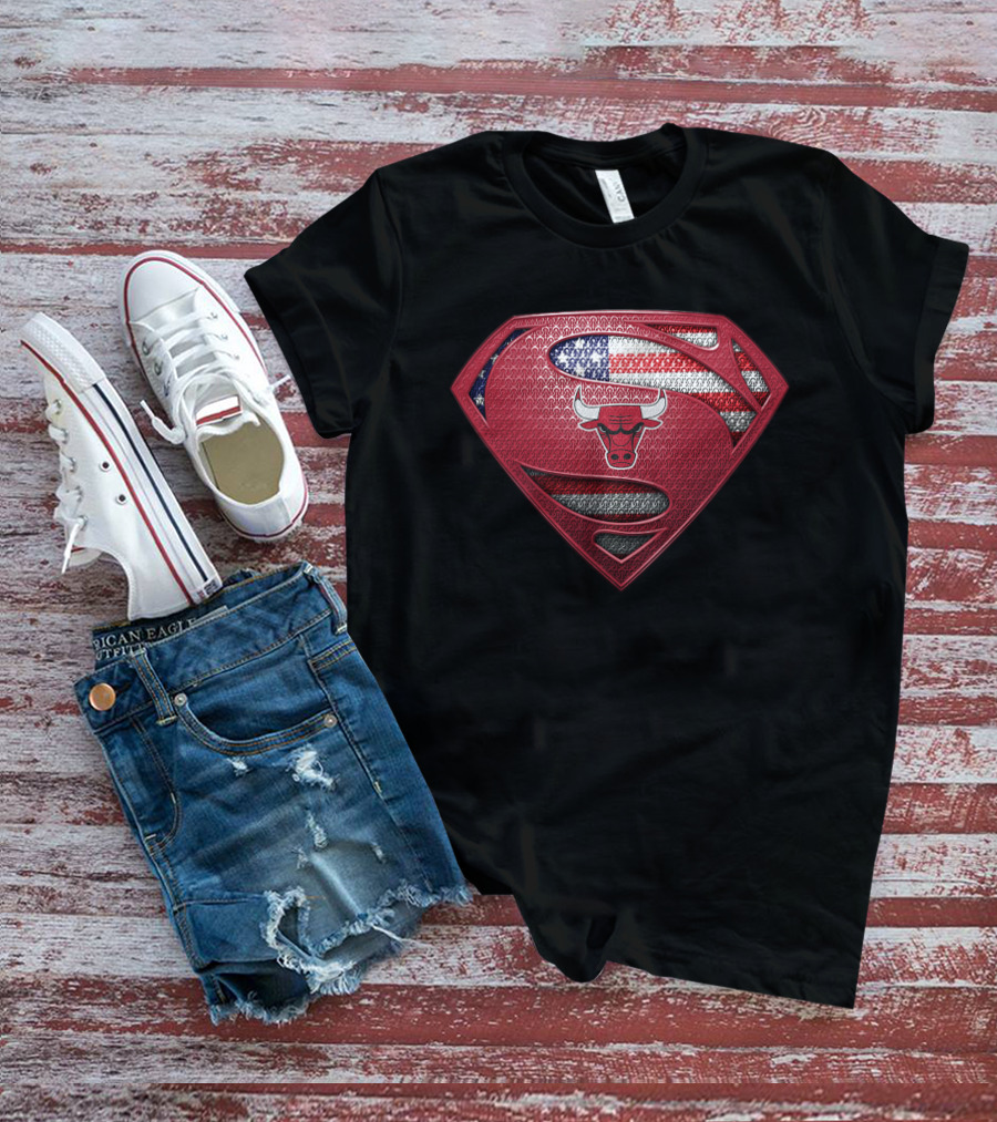 Chicago Bulls Superman Emblem With American Flag T-Shirt