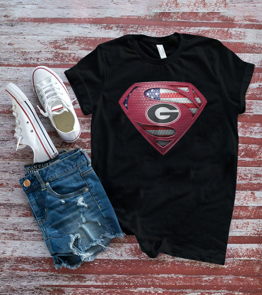 Georgia Bulldogs Superman Logo American Flag T-Shirt