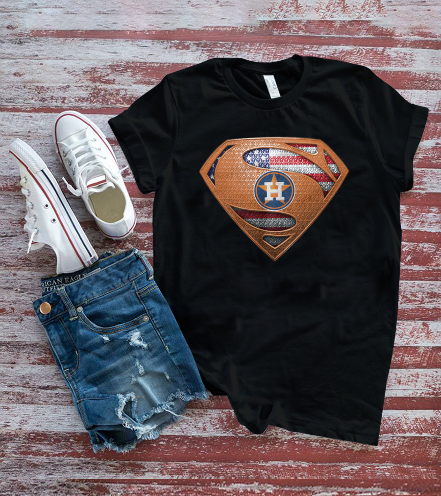 The Houston Astros Superman American Flag Shield Shirt offers a regular fit. Made from 100% ring-spun cotton that is pre-shrunk to help maintain size and shape after washing. Features reinforced construction details for durability. Available in U.S. standard sizes S-5XL to accommodate various body types.