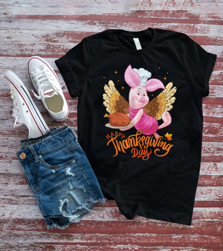 Happy Thanksgiving Day Piglet Chef With Turkey And Wings T-Shirt