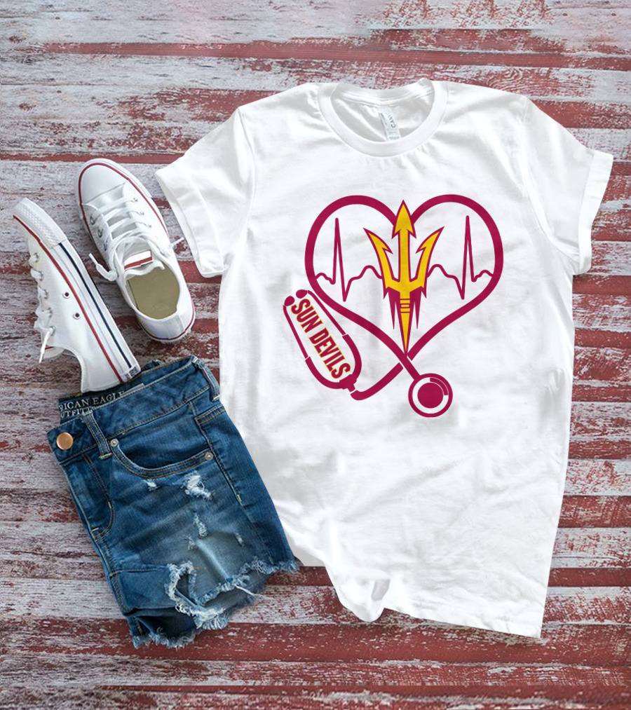 Nurse Love Arizona State Sun Devils Heartbeat Stethoscope T-Shirt