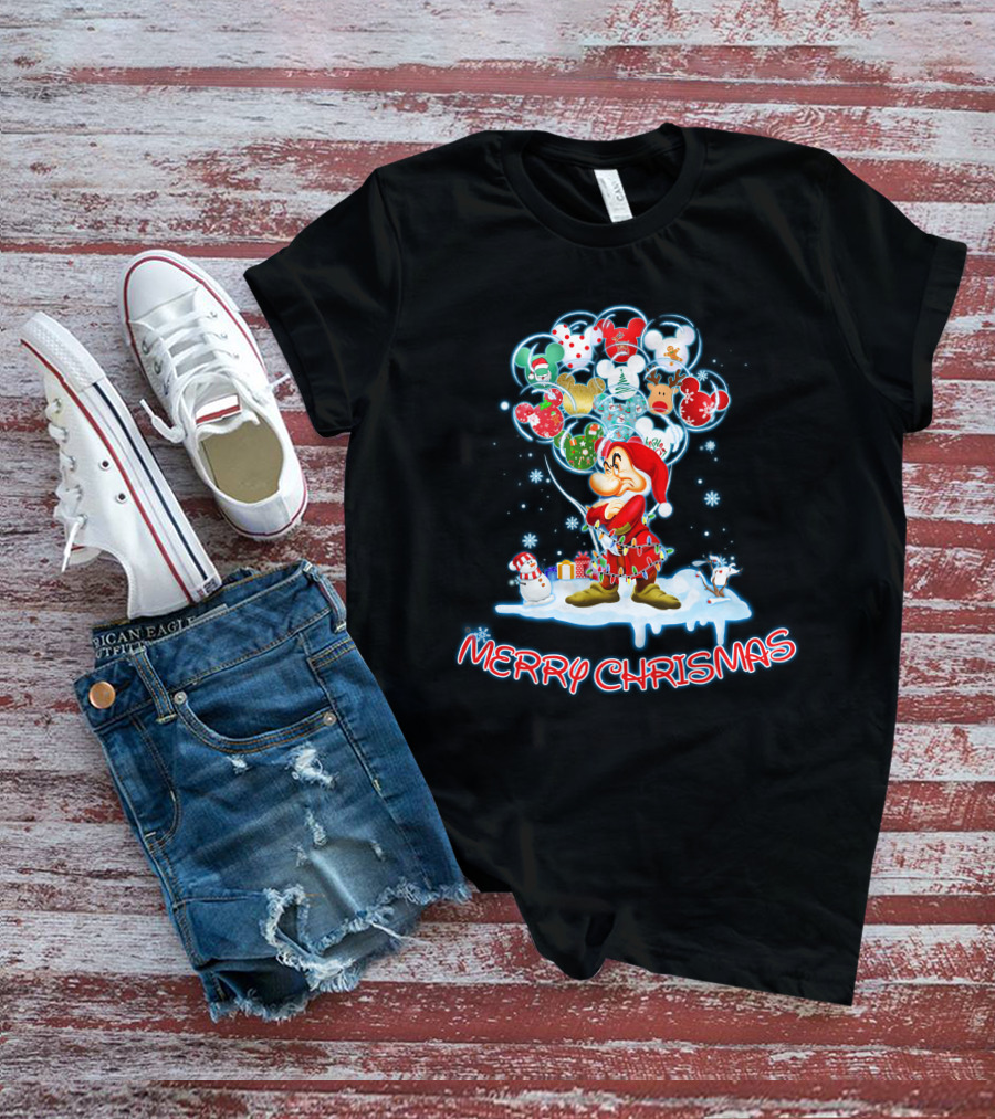 Grumpy Character With Festive Balloons Merry Christmas T-Shirt