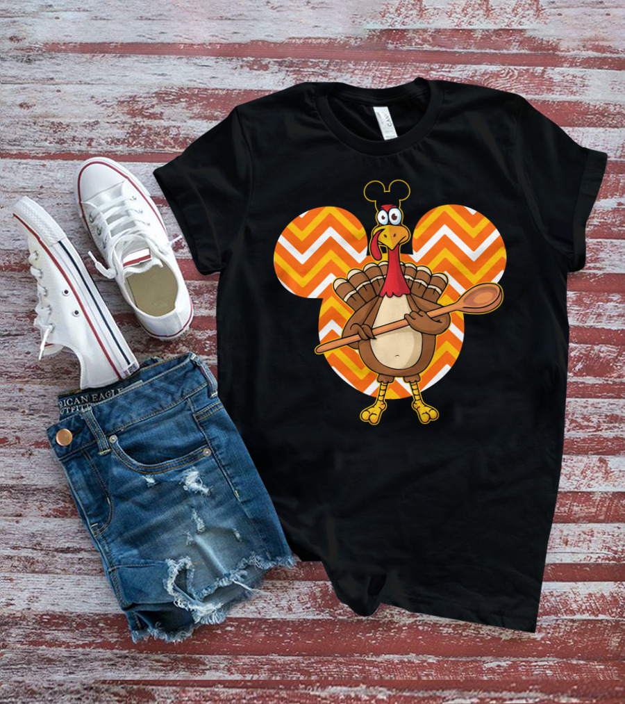 Thanksgiving Turkey With Spoon And Mickey Ears On Chevron T-Shirt