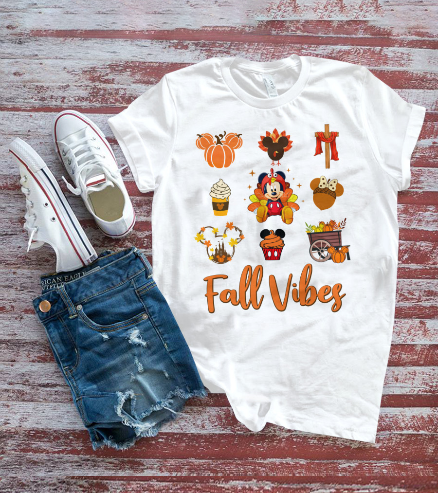 The Fall Vibes Mickey Pumpkin Mouse Ears Thanksgiving Cupcake Harvest Decor Shirt offers a regular fit. Made from 100% ring-spun cotton that is pre-shrunk to help maintain size and shape after washing. Features reinforced construction details for durability. Available in U.S. standard sizes S-5XL to accommodate various body types.