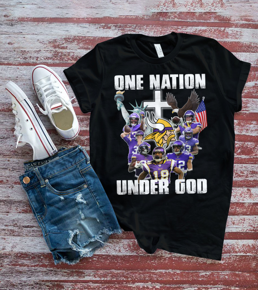 Vikings One Nation Under God Nfl Players Liberty Eagle Flag Cross T-Shirt