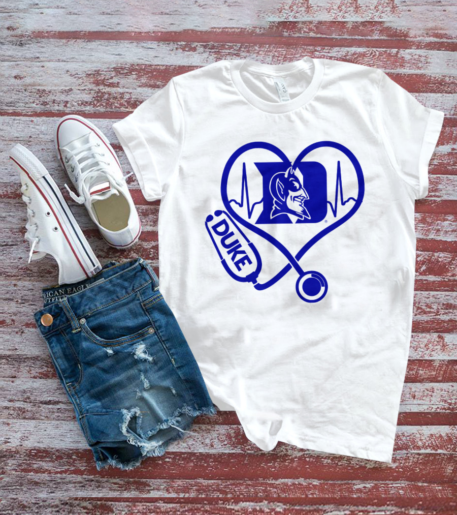 Duke Blue Devils Nurse Love Heartbeat Stethoscope T-Shirt